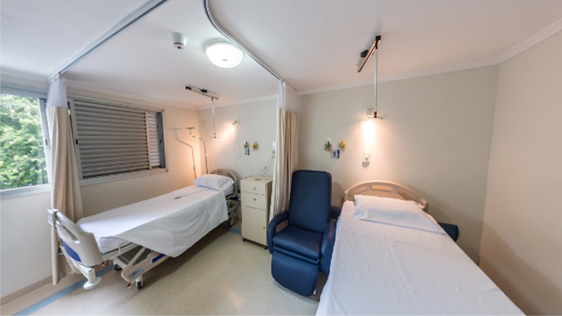 As acomodações são organizadas de acordo com especificidade do seu plano de saúde, tanto para internações compartilhadas como internações individuais.