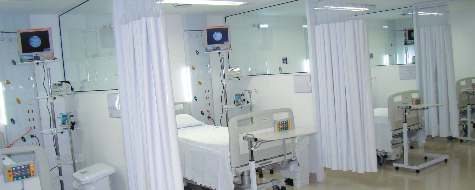 Vários leitos proporcionando segurança e privacidade aos pacientes com equipamentos de tecnologia internacional.